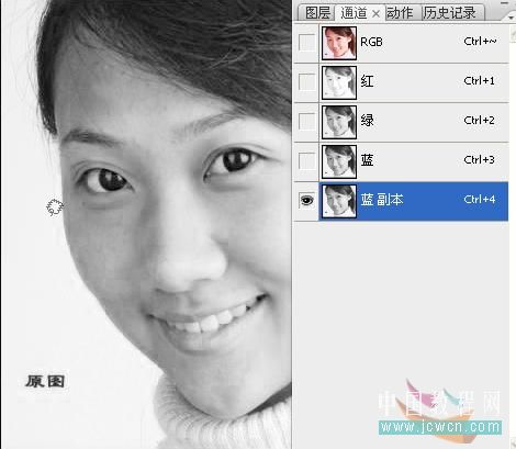 3、點通道面板,把藍色通道復制一層。