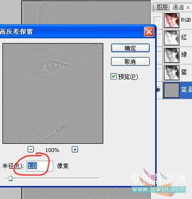 4、執行:濾鏡 > 其它 > 高反差保留,參數設置如下圖。