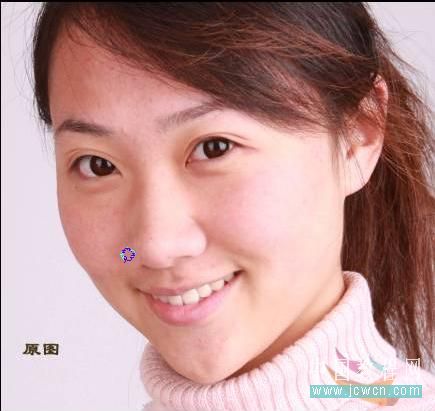 1、打開原始圖片,祛痘:使用套索及印章工具隨便把大的去掉就行。