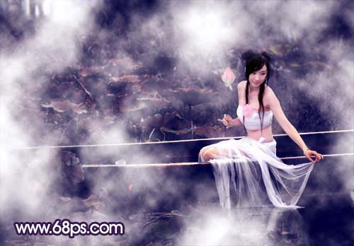 4、把云彩圖層的圖層混合模式改為“濾色”,加上圖層蒙版用黑色畫筆把人物臉部擦出來,效果如圖5。