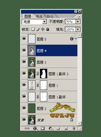 07、下一步是進行銳化和提亮的處理,ctrl+shift+alt+e蓋印圖層,得到新的圖層3,在圖層3執行圖像--模式--lab顏色--不拼合--通道--明度--ctrl+a--ctrl+c--點lab通道回到圖層3--ctrl+v得到圖層4,圖層的混合模式設定為亮度,不透明度調至70%。對圖層4執行濾鏡--銳化--usm銳化--數量50%--半徑2像素--閾值0色階,圖像--模式--rgb顏色。ok收工。