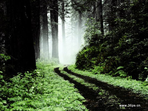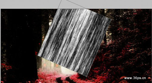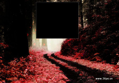 7.新建一個(gè)圖層,在圖像中間畫(huà)一個(gè)長(zhǎng)方形選區(qū),大小任意,,位置大約在樹(shù)中間的空白處,填充為黑色: