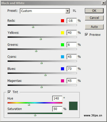 5.下面這步根據(jù)你自己的需求考慮是否需要了,這里因?yàn)橛X(jué)得圖像比較生硬,所以我們?cè)谏噬险{(diào)整一下。復(fù)制一下上面我們圖層模式為柔光的那個(gè)圖層,打開(kāi)黑色調(diào)節(jié)器(編輯---調(diào)整----black and white,快捷鍵是ctrl+shift+alt+b),設(shè)置參數(shù)如下:
