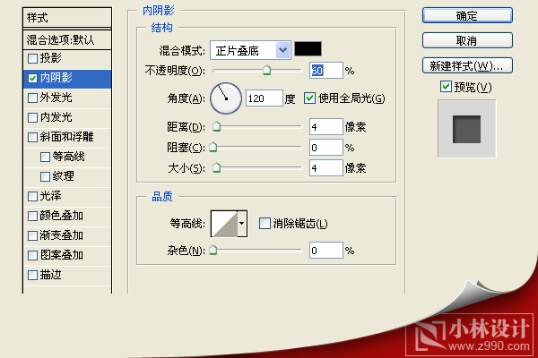 12,對圖層1添加內(nèi)陰影圖層樣式