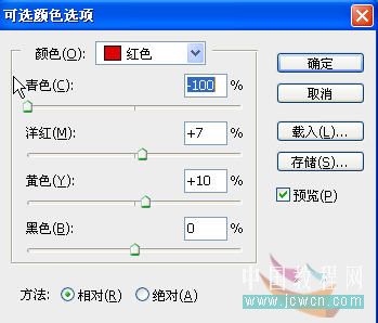 4、圖像/調(diào)整/可選顏色,設(shè)置如圖。