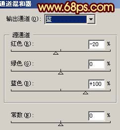7、創(chuàng)建通道混合器調整圖層,對藍色進行調整,參數設置如圖13,效果如圖14。