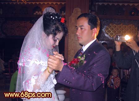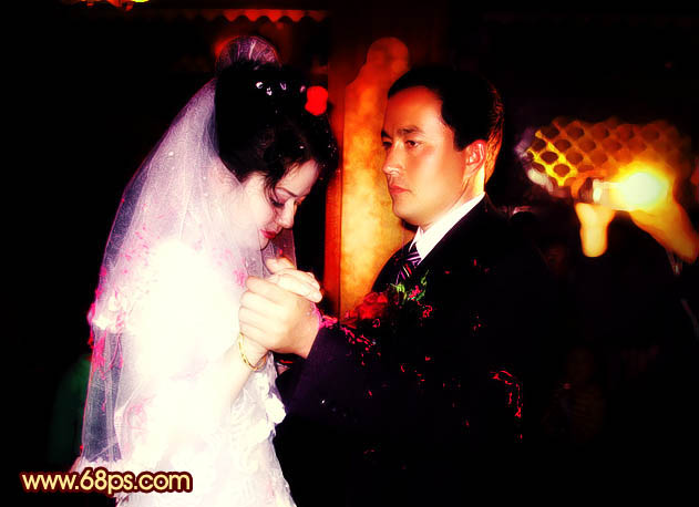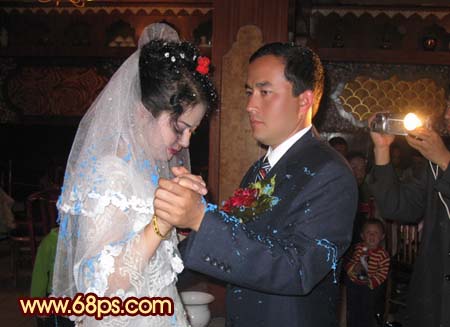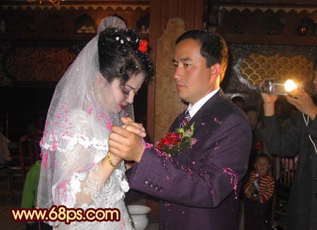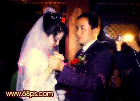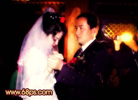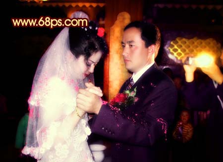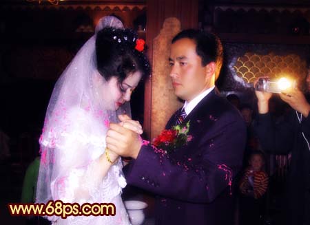原圖為室內拍攝的照片,光線有點不足。人物皮膚及衣服上有很多雜點。處理的時候多用模糊工具處理。色調等可以按照自己的喜好調整。