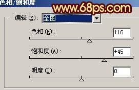 8、創(chuàng)建色相/飽和度調整圖層,參數設置如圖15,效果如圖16。