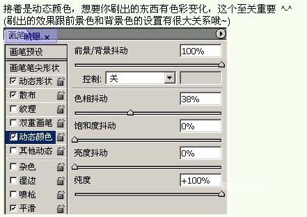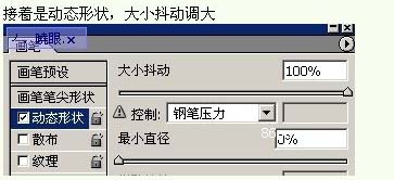 3、接著選擇動態(tài)形狀,大小抖動調(diào)大。