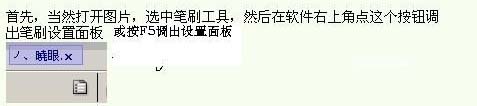 1、打開原圖,選中筆刷工具,然后在軟件右上角點下圖所示的按鈕調(diào)出筆刷設置面板,也可以直接按f5調(diào)出。
