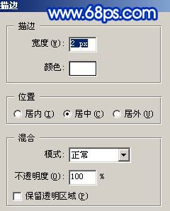 2、選擇菜單:選擇 > 儲存選區,然后自己命名。確定后再執行:編輯 > 描邊,參數設置如圖2,然后按ctrl + d取消選區,效果如圖3。