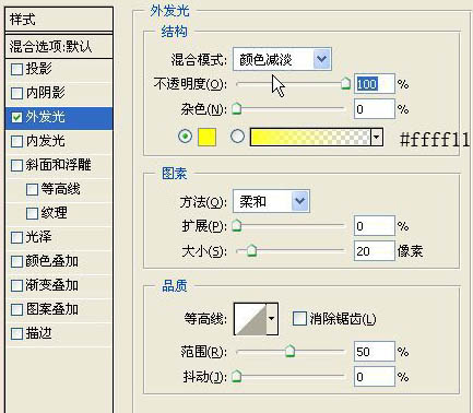 7、還是在文字層,雙擊圖層調(diào)出圖層樣式,勾選外發(fā)光樣式。