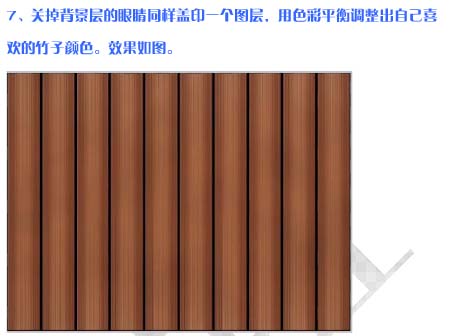 7、關掉背景層的眼睛同樣蓋印一個圖層,用色彩平衡調(diào)出自己喜歡的竹的顏色。