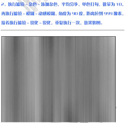 2、執(zhí)行:濾鏡 > 雜色 > 添加雜色,平均分布,勾選單色,數(shù)量為:10,再執(zhí)行:濾鏡 > 模糊 > 動感模糊,角度為:90度,距離拉到:999像素,接著執(zhí)行:濾鏡 > 銳化 > 銳化,重復執(zhí)行一次,效果如下圖。