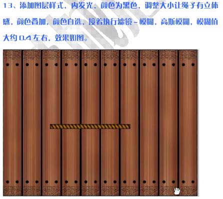 13、添加圖層樣式,內(nèi)發(fā)光,顏色為黑色,調(diào)整大小,讓繩子有立體感,顏色自選,接著執(zhí)行:濾鏡 > 模糊 > 高斯模糊,數(shù)值為0.4左右。