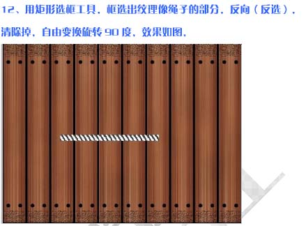 12、用矩形選框工具,框選出紋理像繩子的部分,反相,清除調(diào),自由變換旋轉90度,效果如下圖。
