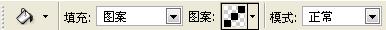 5.打開1.psd,選擇油漆桶工具,在上面的樣式欄選擇填充圖案,圖案選擇我們制作好的“斜三黑”~如下圖: