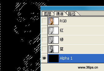 第二步,創(chuàng)建一個(gè)alpha通道(點(diǎn)擊通道面板下面的“新建通道”),這時(shí)候除了選區(qū)的框,整個(gè)圖像應(yīng)該是變成黑色了,如下圖: