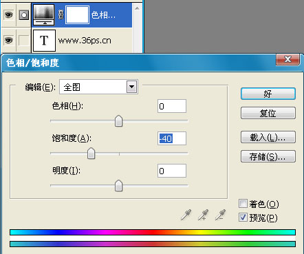 7.在陰影的圖層上新建一個色相飽和度圖層(怎么新建?請查閱以往教程!呵呵~~多多看36ps.cn啊~~),設置如下: