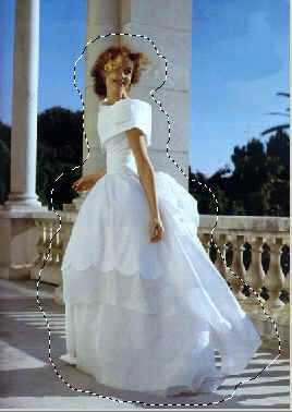 這是一張少女全身圖,姿態(tài)優(yōu)美。如果再如上一課那樣,把它用圓框框起來,就不恰當(dāng)了。這時(shí),就要用輪廓圖了。制作步驟是一樣的,只是用的工具不一樣。