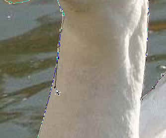 5、修改節(jié)點需要極大的細心與耐心。有時,需要增加節(jié)點,有時,需要刪除節(jié)點,或者是把曲線節(jié)點轉(zhuǎn)換成轉(zhuǎn)折節(jié)點,像尾部的羽毛,有些是直線,有些是曲線,這些都要很好的銜接好。不過,如果你在畫的時候是極大的放大的,最后可以把它縮小到原圖大小,再來看看這些細節(jié),有時,不太好的地方因縮小了就看不出來了,也就可以了。