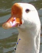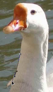 2、以任意一個地方為起點,用鋼筆工具點上一點,不要松開,向下拖動一點,這樣會產(chǎn)生曲線手柄,這個節(jié)點就是曲線節(jié)點了。繼續(xù)向下走,再點第二個點,也是一樣拖出手柄。(除非是直線可以不拖)。讓線條緊貼著鵝的邊緣。點的地方不必太多,盡量點在曲線有明顯變化的地方。點的距離也不要太遠了,太遠了不容易控制。如果現(xiàn)在點的位置不是很準確,曲線也不太理想,先不必理會,繼續(xù)向下點。回頭全部點好之后再來修改。也可以到“歷史紀錄”,返回到上一個節(jié)點,重新點。