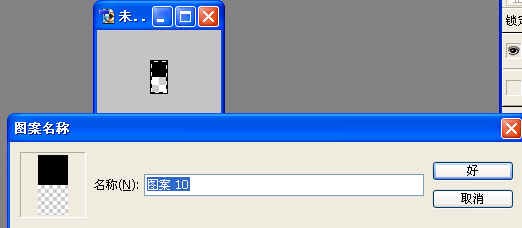 你可以給這個自定義的圖案起一個名字,后面會用到。做到這兒,我們把抽絲圖的“絲”做好了。其實在這兒只是自定義了一個圖案。在做自定義圖案時,首先 它必須是矩形的,而不能是其它的什么形狀。 剛才的“全選”也可以不做。因為默認就是把所有的畫面都放到自定義圖案中去。如果你是只需要放入一小部分,就可以用矩形選框工具來選取后,再進行“定義圖案”。