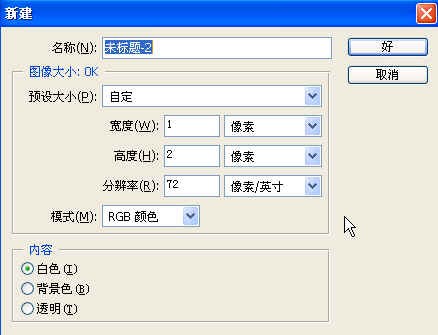 這里,我們要自定義一個圖案。所以,這個文件很小,寬度只有一個像素,高度只有二個像素。
