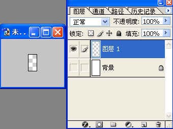 4、現(xiàn)在我們是在圖層1上面進行工作。用矩形選框工具,選中上面的一個像素。然后把這個選區(qū)填充黑色。然后取消選擇。這樣就形成了上面一個像素是黑色的,下面一個像素是透明的。這就是我們所要的自定義圖案。