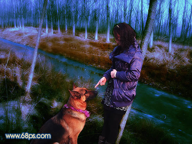 本教程介紹冷色調(diào)調(diào)色方法。原圖素材色彩比較單一,處理的時候先簡單的把色彩層次調(diào)開一點,然后再整體調(diào)色,色調(diào)主要是深藍色,也可以調(diào)成自己喜好的色彩。