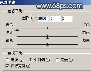 8、創(chuàng)建色彩平衡調(diào)整圖層,參數(shù)設(shè)置如圖12,確定后新建一個圖層,蓋印圖層,執(zhí)行:圖像 > 應(yīng)用圖像,參數(shù)設(shè)置如圖13,效果如圖14。
