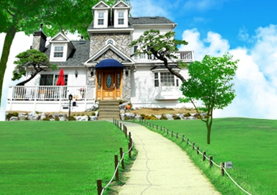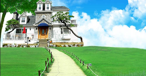 這個草地照片是很好找的,xp的默認壁紙就是這樣的,稍稍的擋住一些房子底部的街道,接著為了添加小道來做準備