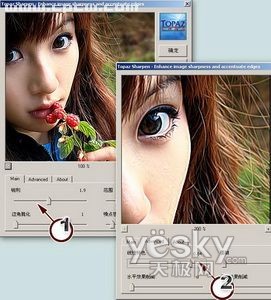 在安裝了topaz外掛濾鏡之后,我們打開一張圖片,使用菜單“濾鏡→topaz vivacity→topaz sharpen”,在main選項卡中,設置銳利值為“1.9”。