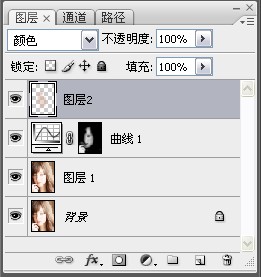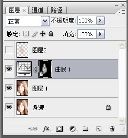 1.直接建立曲線調整層,對圖象進行壓暗,如圖: