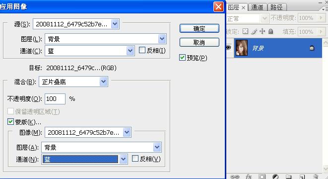 2.圖像-應用圖像...藍通道與藍通道進行正片疊底