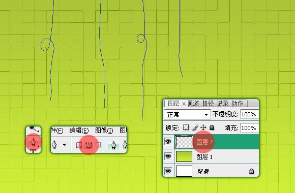 一、首先我們利用鋼筆工具創建路徑(注意在生成狀態的時候就生成為路徑,而不是形狀圖層)然后新建一個層1