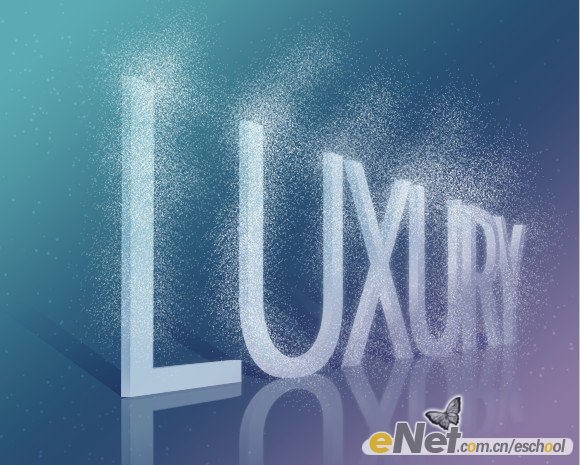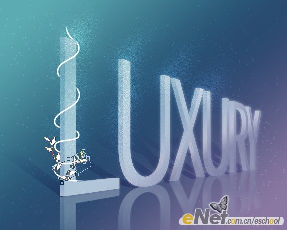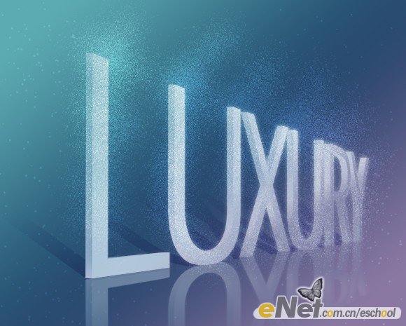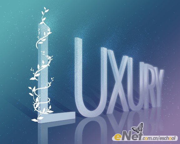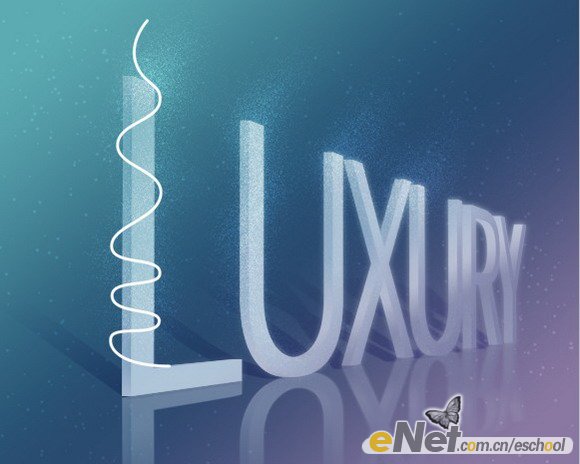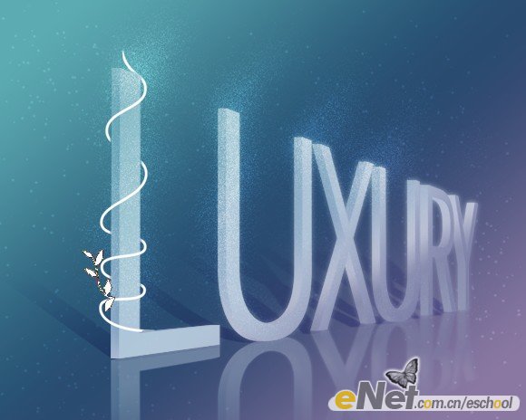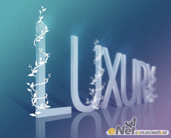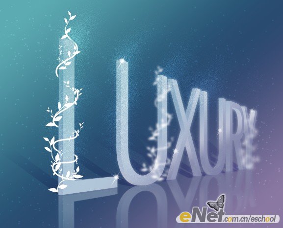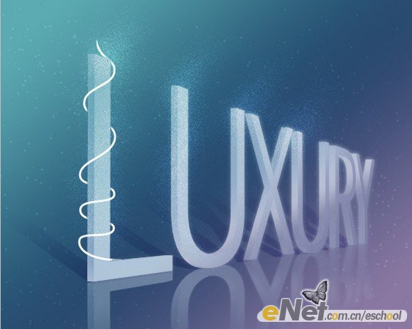 3.設置前景色的顏色為白色,選擇橫排文字工具,并在其選項條上設置適當的字體和字號,在畫布中間輸入如圖4所示的文字,并得到相應的文字圖層“luxury”。