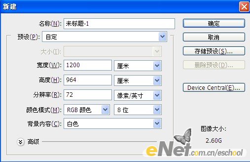 1.按ctrl+n鍵新建一個文件,設置彈出的對話框如圖1所示,按確定以創建一個新的空白文件。