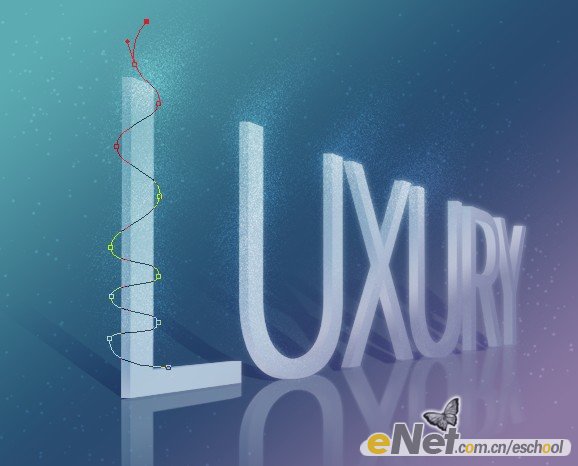 5.選擇鋼筆工具,并在其工具選項條上單擊路徑命令按鈕,在字母“l”上繪制如圖40所示的路徑。
