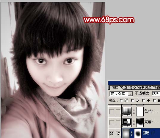 7、新建一個(gè)圖層蓋印圖層,適當(dāng)?shù)陌褕D層銳化一下,按ctrl + alt + ~調(diào)出高光選區(qū),新建一個(gè)圖層填充白色,然后把圖層不透明度改為:30%,效果如圖7。