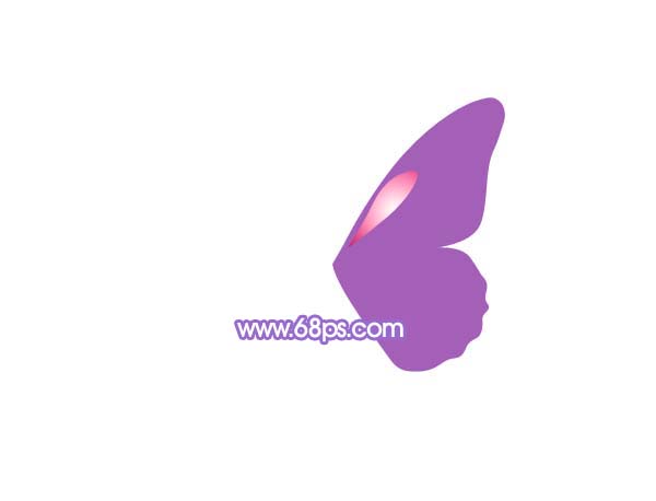 1、新建一個(gè)600 * 450像素的文件,背景暫時(shí)填充白色,然后新建一個(gè)圖層,用鋼筆工具先制作勾出蝴蝶的一邊翅膀如圖1,然后按ctrl + enter轉(zhuǎn)為選區(qū)后填充顏色;#9d5cb1,效果如圖2。