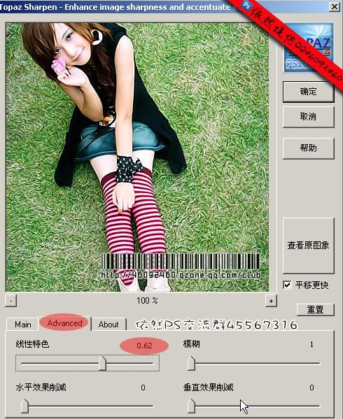 打開原圖:用topaz濾鏡進行磨皮 數據如下圖: