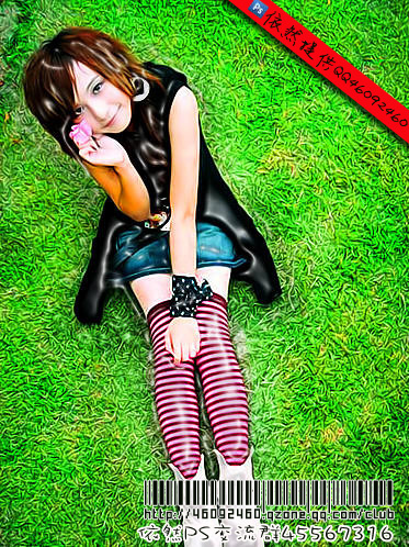 8:選用加深工具再在背景上涂抹 加強背景花草質感!