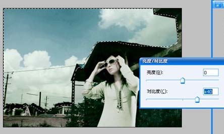 12、把天空部分用套索工具勾出來,羽化后適當加大對比度,如下圖,確定后完成最終效果。