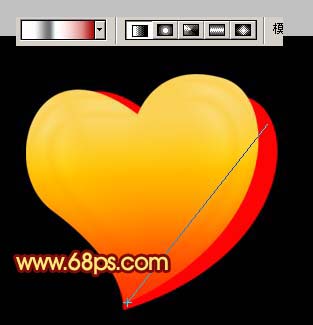 6、選擇漸變工具,顏色設(shè)置如圖10,由心形底部向右上拉漸變?nèi)鐖D11,效果如圖12。