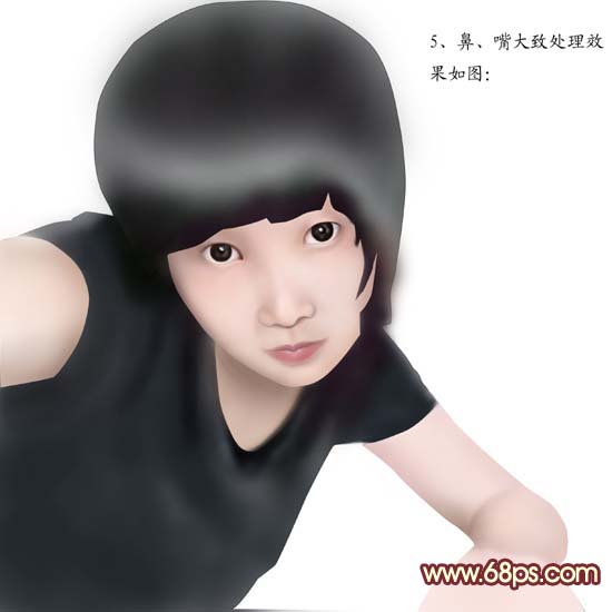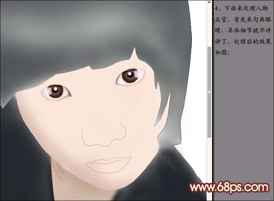 4、下面來處理人物五官,首先來勾畫眼睛,具體細節就不詳講了,處理后的效果如下圖。