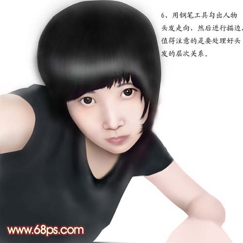 6、用鋼筆工具勾出人物頭發走向,然后進行描邊。值得注意的是要處理好頭發的層次關系。