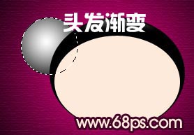 不要取消選區,選擇橢圓/矩形/單行/單列選框中的任意一種工具,再輕按鍵盤上的向下箭頭兩次,將選區微微下移2個象素,在頭部圖層的上方新建一個圖層,取名為頭頂高光。設置前景色為白色,選擇漸變工具,在漸變工具的屬性欄上選擇線性漸變工具,在畫布上做一條白色到透明的線性漸變。做好之后填充度更改為37%。