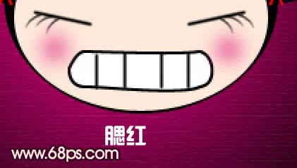 新建一個圖層,取名為腮紅,設置前景色為#ea68a2(r:234,g:104,b:162),選擇直徑為35個象素的柔角筆刷,在娃娃頭的左右臉各輕輕的點一下。更改填充度為71%。