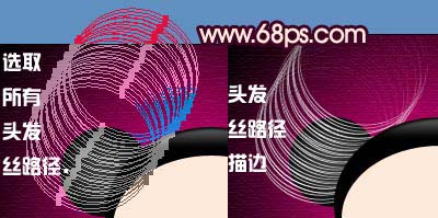 用路徑選取工具選取所有頭發路徑,然后單擊鼠標右鍵,選擇描邊路徑,彈出描邊路徑對話框,在下拉框里選擇畫筆,勾選模擬壓力,點擊確定。效果如圖
